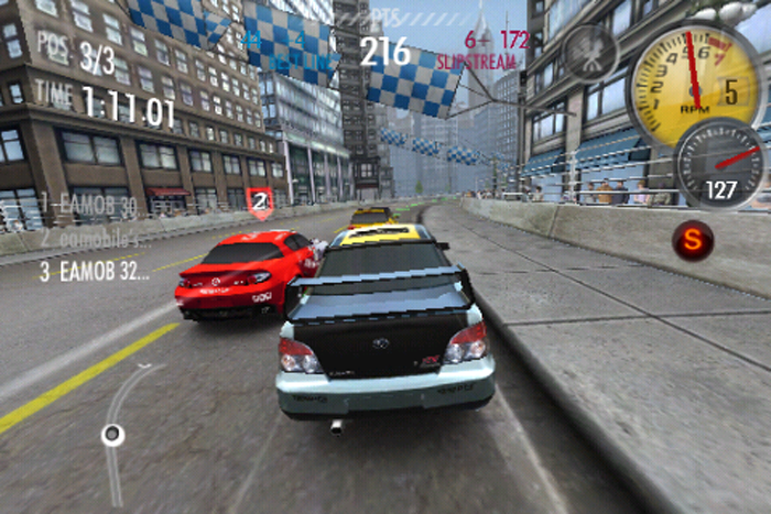 Управление в игре, как это уже повелось, осуществляется с помощью акселерометра. Доступно три вида камеры: из салона, при этом видно руль и приборную доску, от третьего лица и с капота.